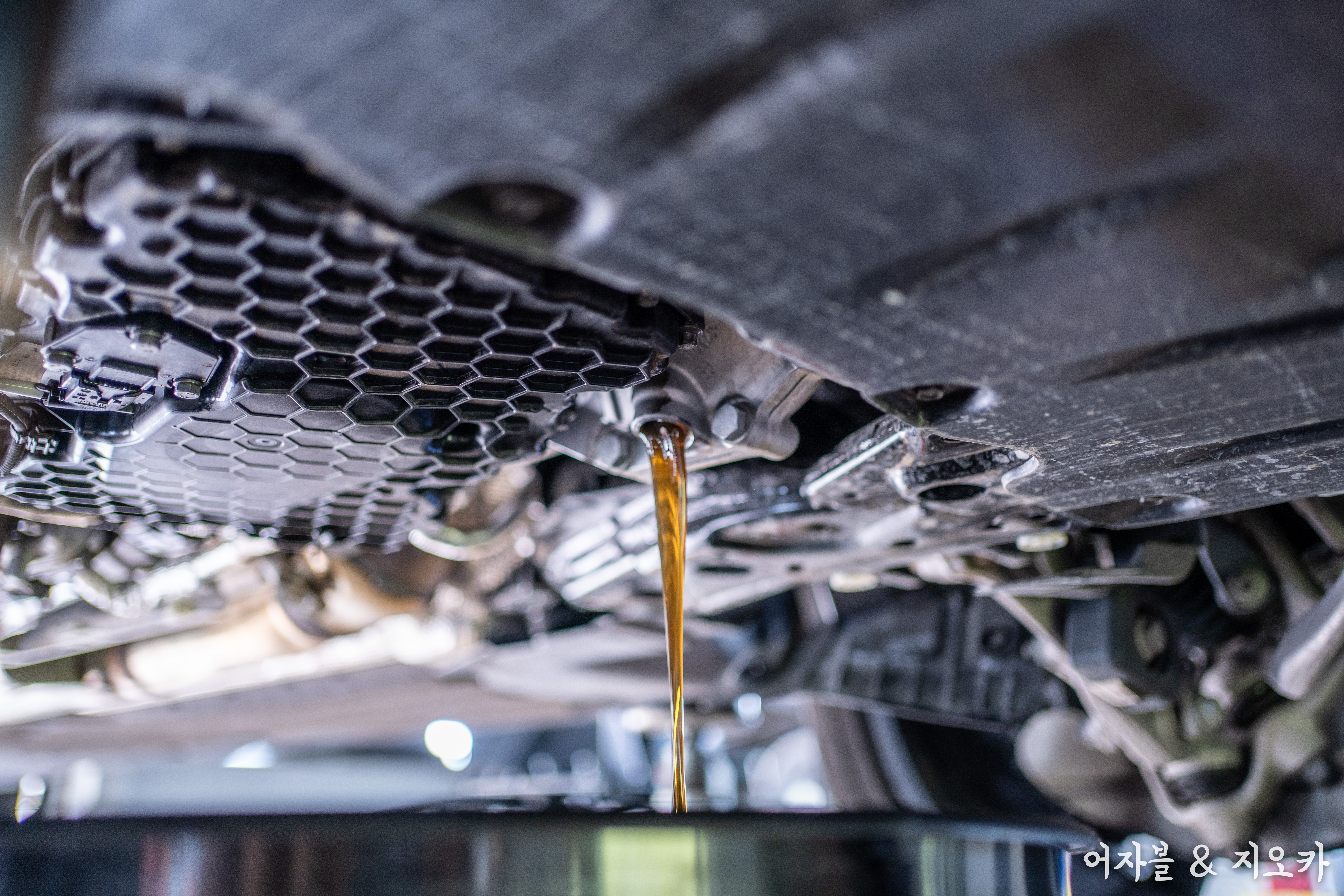 엔진오일부터 배출합니다.